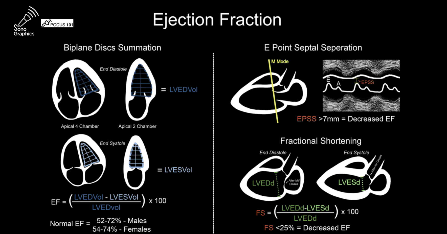 - LVEF approx = 75.5 – (2.5 x EPSS [millimeters])2