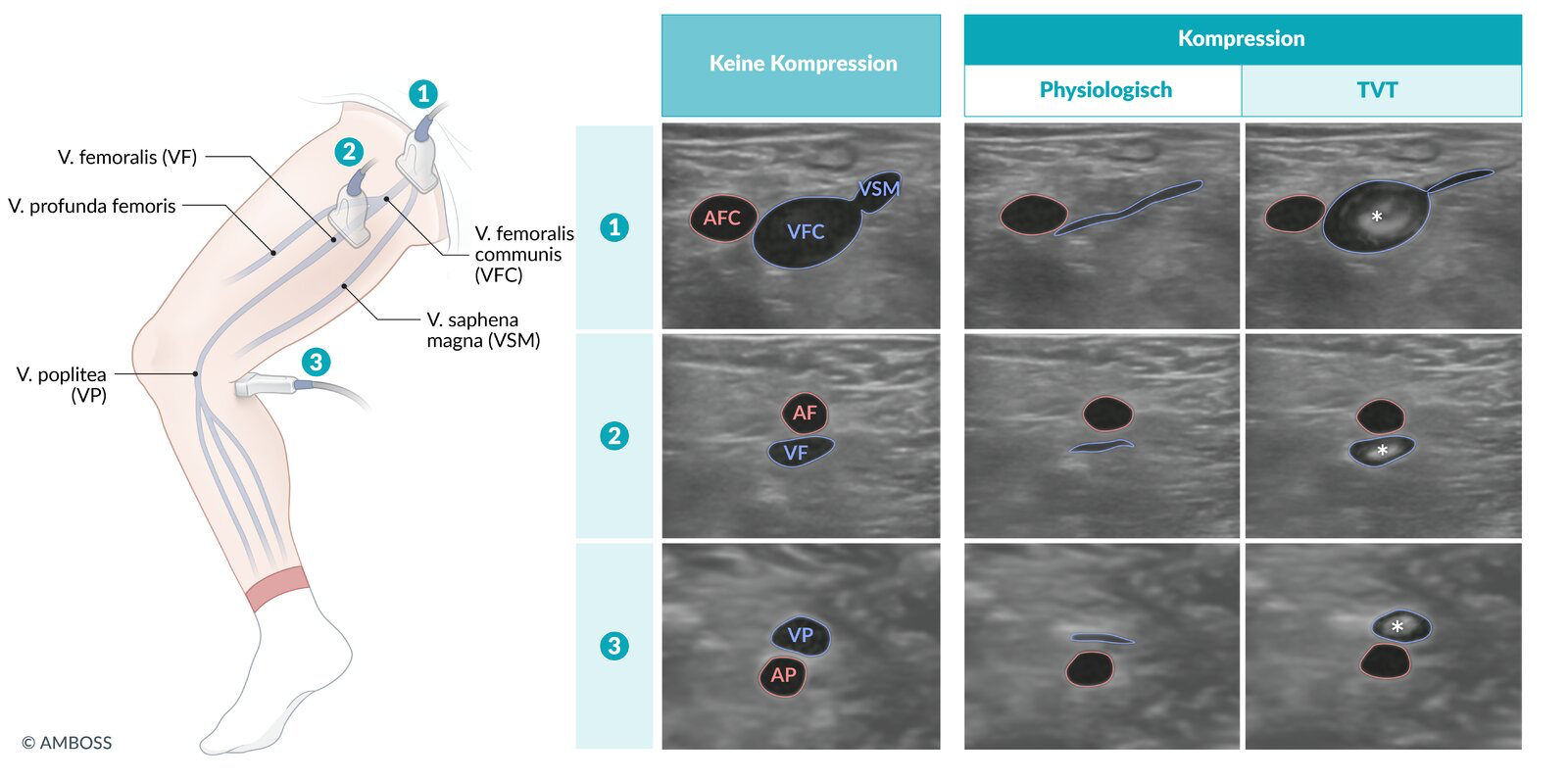 - POCUS: Vollständige TVT-Sono (Ausschluss mögl.) oder 3-Pkt. (neg. = Vollständige Kontroll-Sono in 4-7d), ggf. +RHB?